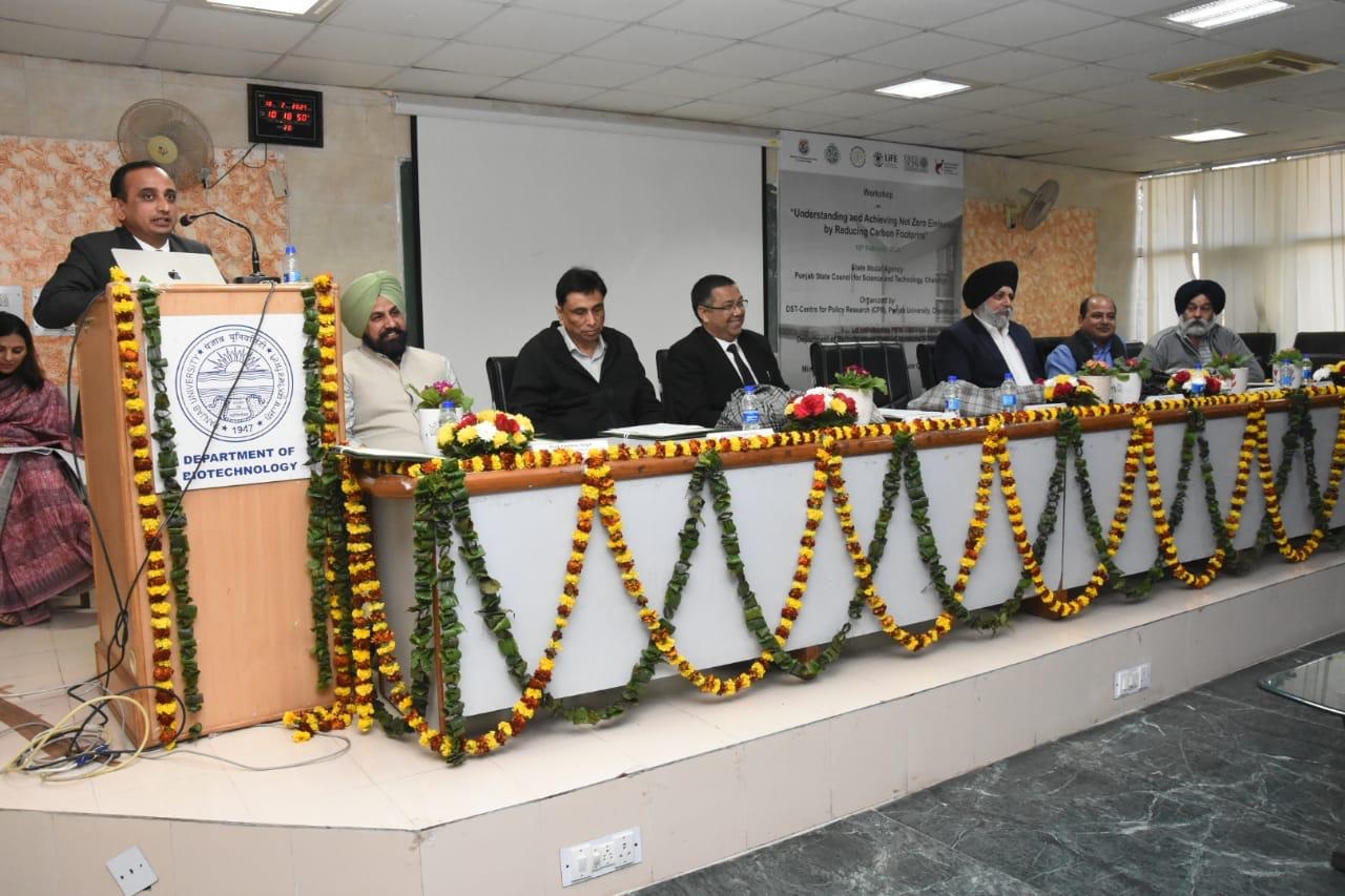 DST-Centre for Policy Research (CPR), Panjab University, in collaboration with the Department of Biotechnology, Panjab University, and Punjab State Council For Science And Technology, organized a workshop on “Understanding and Achieving Net Zero Emission by Reducing Carbon Footprint” on February 18, 2025. The event aimed to raise awareness and suggest strategies for Achieving Net Zero Emissions for climate resilience.